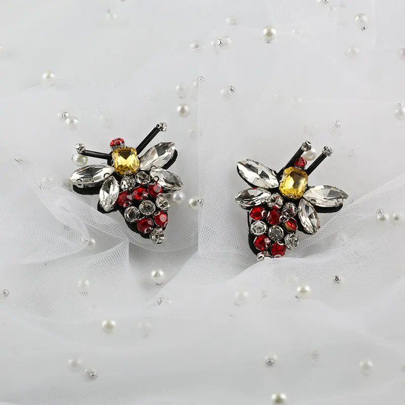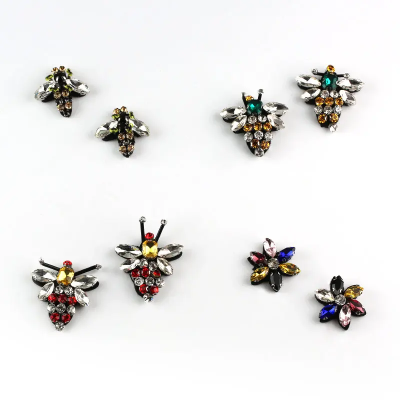 QIAO Handmade Crystal Rhinestone beaded&sequin Patche Bees Shape Fashion Sew on pearl patch for clothes beaded Applique Cute DIY